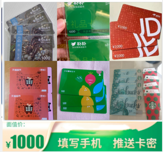京东E卡/ 叮咚买菜/ 天猫超市/ 盒马/ 携程/ 仆仆超市/礼品卡/(多面值)